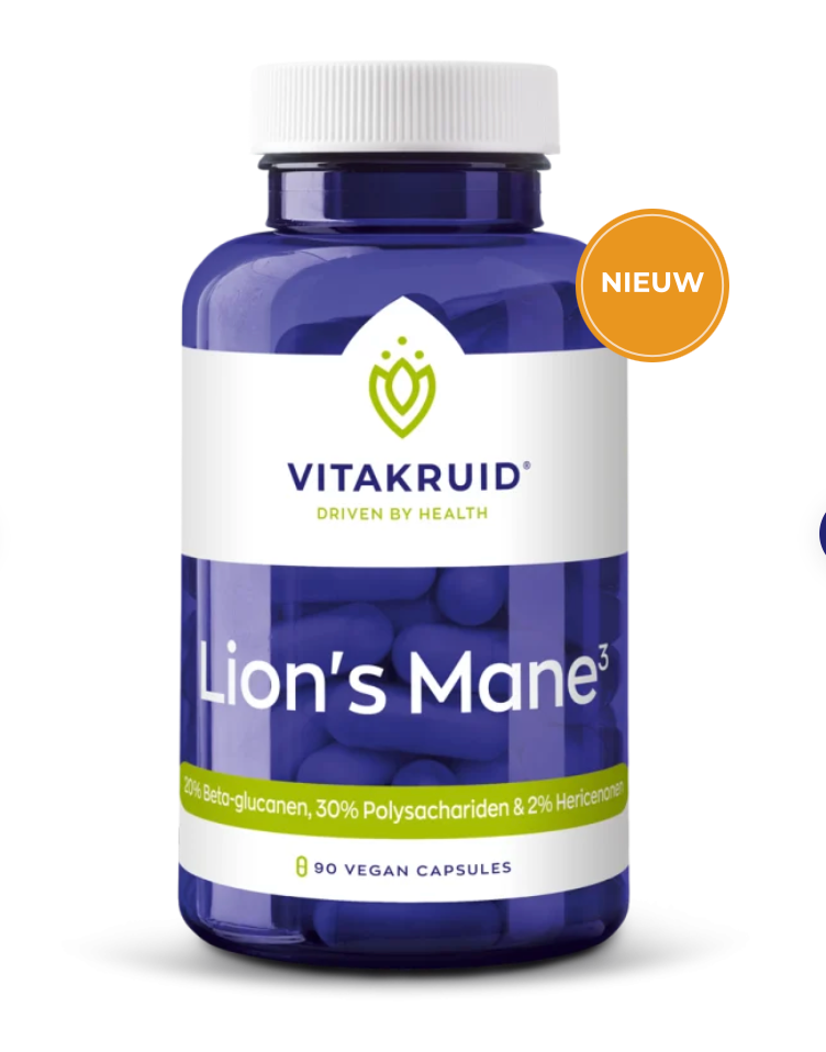 • Lion’s Mane (Hericium erinaceus) extract ondersteunt geheugen, focus en cognitieve functie